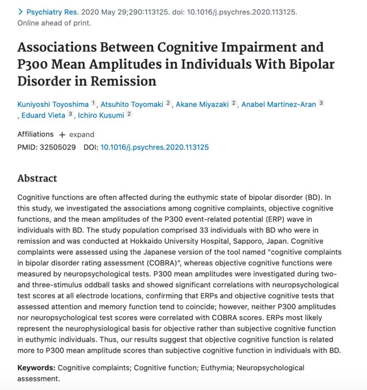 Associations Between Cognitive Impairment and P300 Mean Amplitudes in Individuals With Bipolar Disorder in Remission