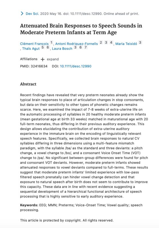 Attenuated Brain Responses to Speech Sounds in Moderate Preterm Infants at Term Age