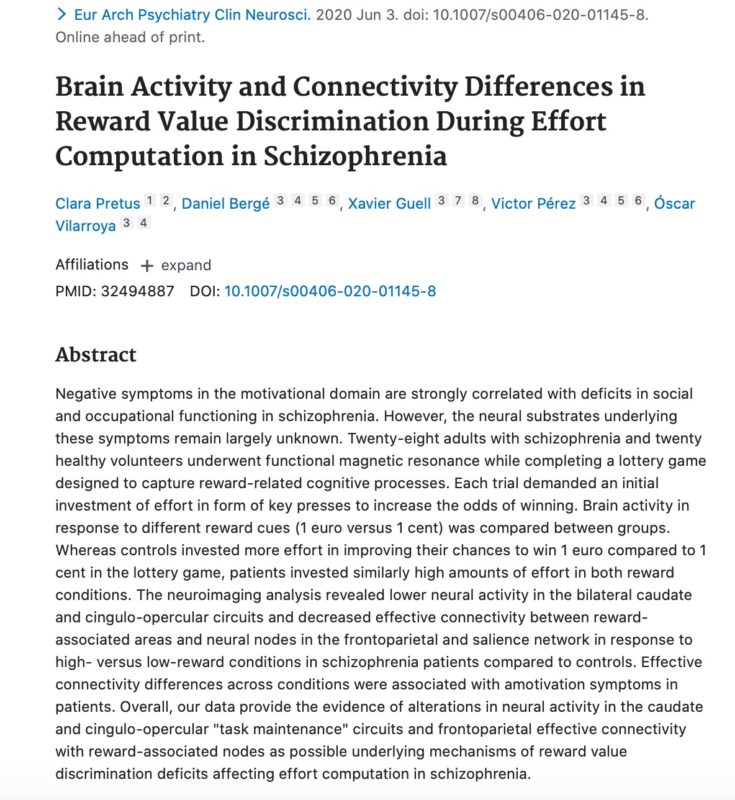 Brain Activity and Connectivity Differences in Reward Value Discrimination During Effort Computation in Schizophrenia