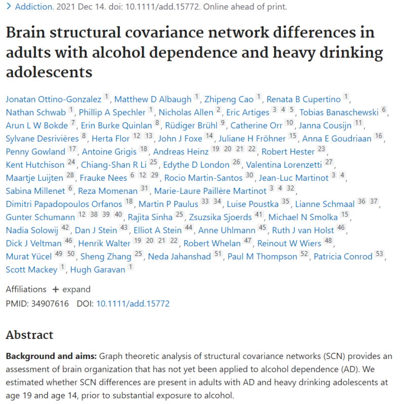 Brain structural covariance network differences in adults with alcohol dependence and heavy drinking adolescents