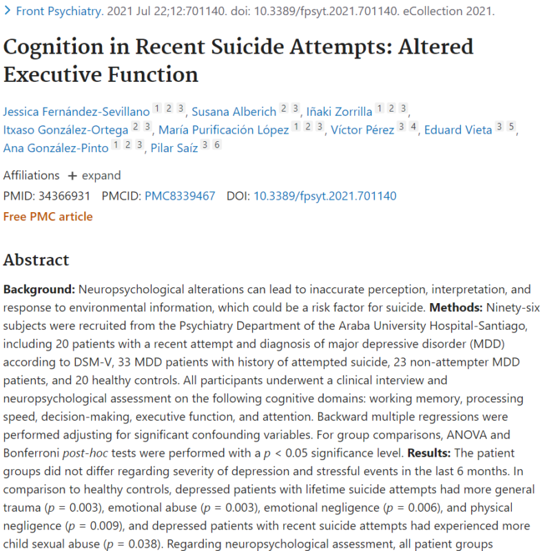 Cognition in Recent Suicide Attempts: Altered Executive Function