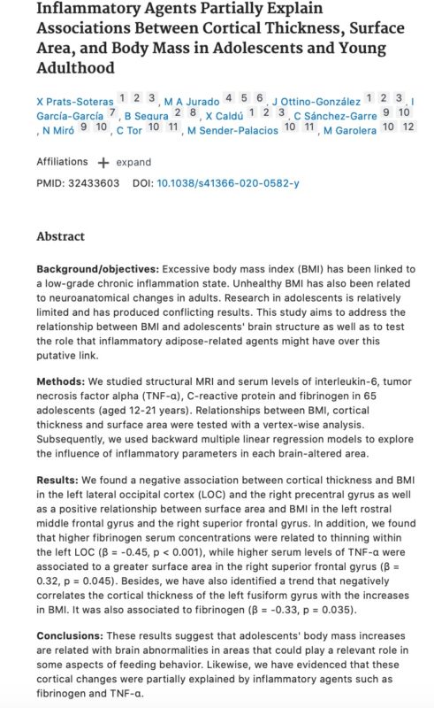 Inflammatory Agents Partially Explain Associations Between Cortical Thickness, Surface Area, and Body Mass in Adolescents and Young Adulthood