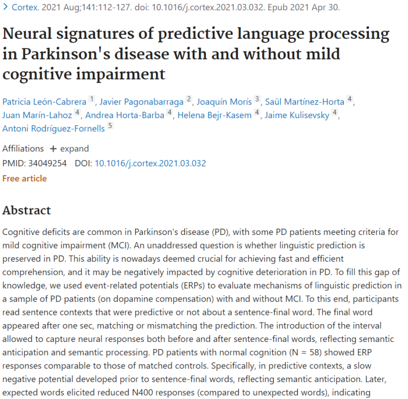 Neural signatures of predictive language processing in Parkinson’s disease with and without mild cognitive impairment