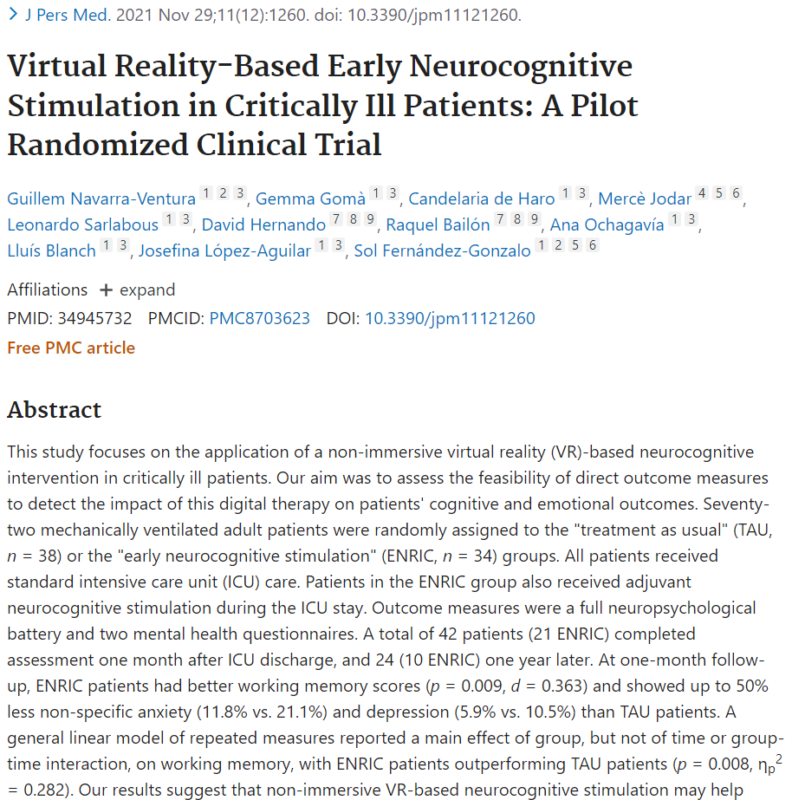 Virtual Reality-Based Early Neurocognitive Stimulation in Critically Ill Patients: A Pilot Randomized Clinical Trial